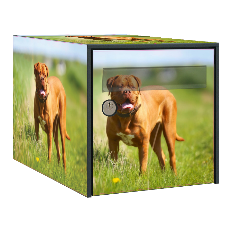 Chaque Sticker boîte aux lettres personnalisé Dogue de Bordeaux est imprimé à la demande, pour un résultat fidèle à vos attentes. Nous réalisons des modèles exclusifs, humoristiques ou design, adaptés à tous les goûts : animaux, nature, vintage, enfant, coloré, graphique, etc.