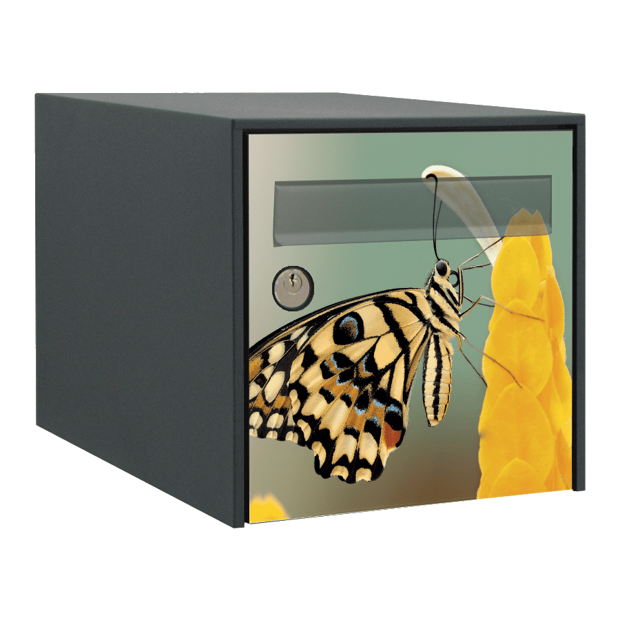 Grâce à notre vinyle haut de gamme, le Sticker boîte aux lettres personnalisé Papillon se pose facilement et reste impeccable dans le temps. L’adhésif permanent assure une excellente tenue même en extérieur.