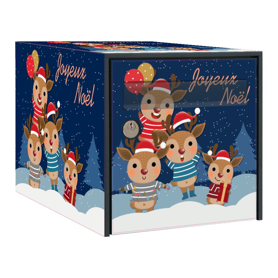 Marre des boîtes aux lettres ternes et identiques ? Distinguez-vous avec un Sticker boîte aux lettres personnalisé Rennes de Noël - facile à retirer original, créé spécialement pour vous. Choisissez votre modèle préféré et personnalisez-le selon vos envies grâce à notre configurateur simple et rapide. En quelques clics, créez une décoration adhésive 100 % sur mesure :