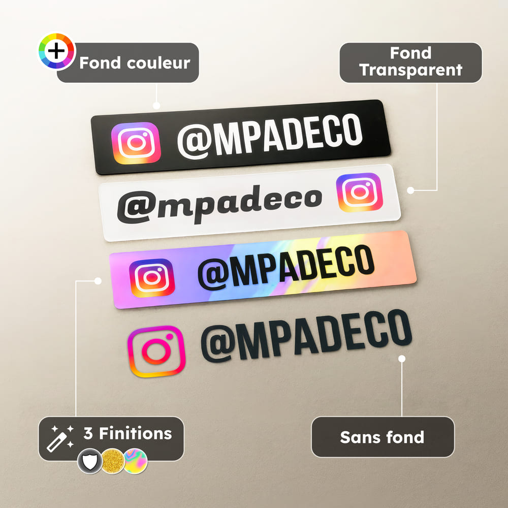 MPA déco vous propose un Sticker Instagram Couleur personnalisé ! Nos autocollants originaux et uniques sont une bonne idée pour votre intérieur intérieure ou votre véhicule : auto, moto, camion, 4x4, quad, camping car… et même sur un baril ou bidon.