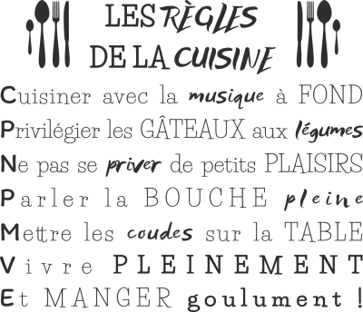 Sticker Les Règles De La Cuisine Sticker Les Règles De La Cuisine Sticker Les Règles De La Cuisine Sticker Les Règles De La Cuisine Sticker Les Règles De La Cuisine Autocollant pour textile Autocollant pour textile
