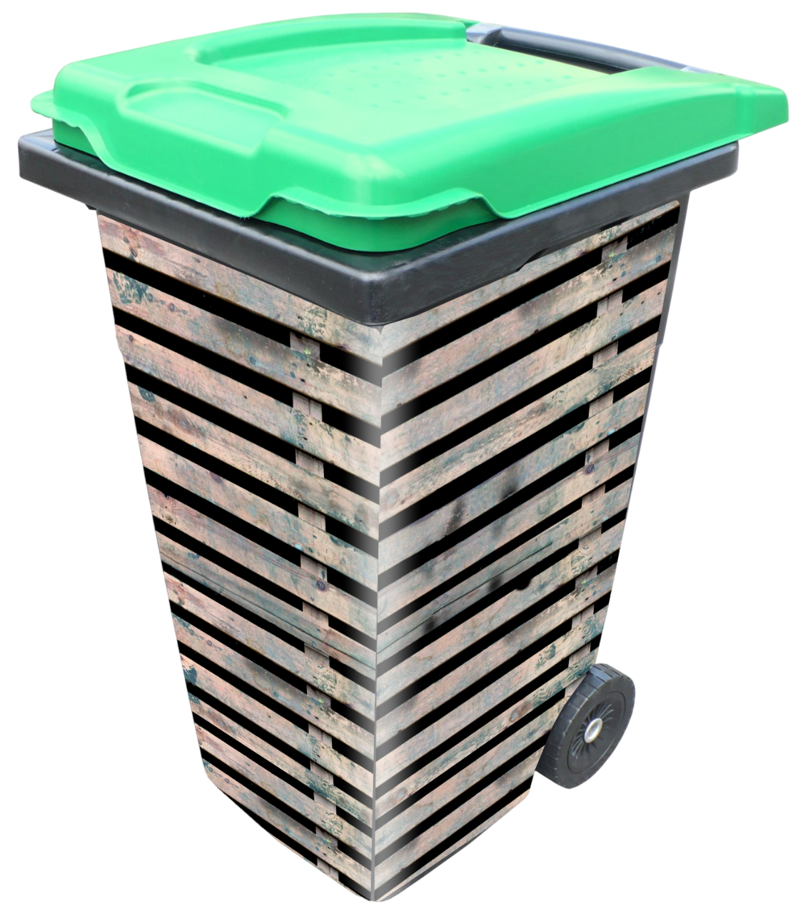 Nos modèles ont été conçus pour s'adapter à toutes les poubelles 120L et 180L standards et normées. Nul besoin de faire des découpes pour adapter le visuel ! Nos produits sont créés pour s'ajuster facilement aux poubelles. Vous pouvez choisir de commander seulement la face avant de la décoration palette, ou de choisir le kit complet qui recouvrira totalement votre poubelle.